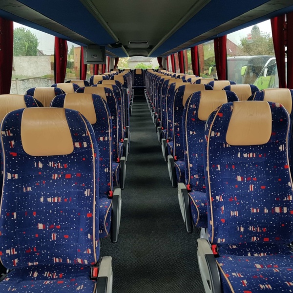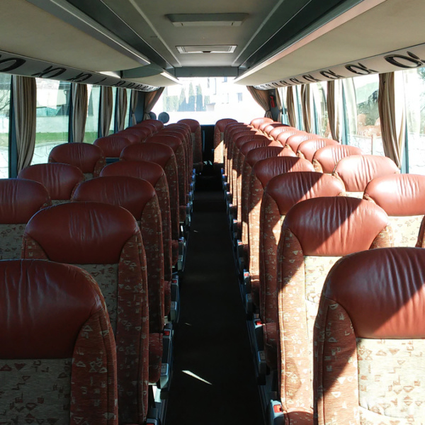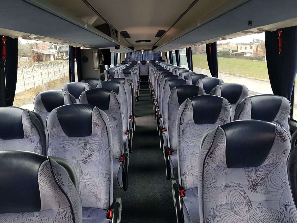 - klimatyzacja, TV, DVD, WC, nagłośnienie, rozkładane fotele, indywidualne nawiewy, cafe bar