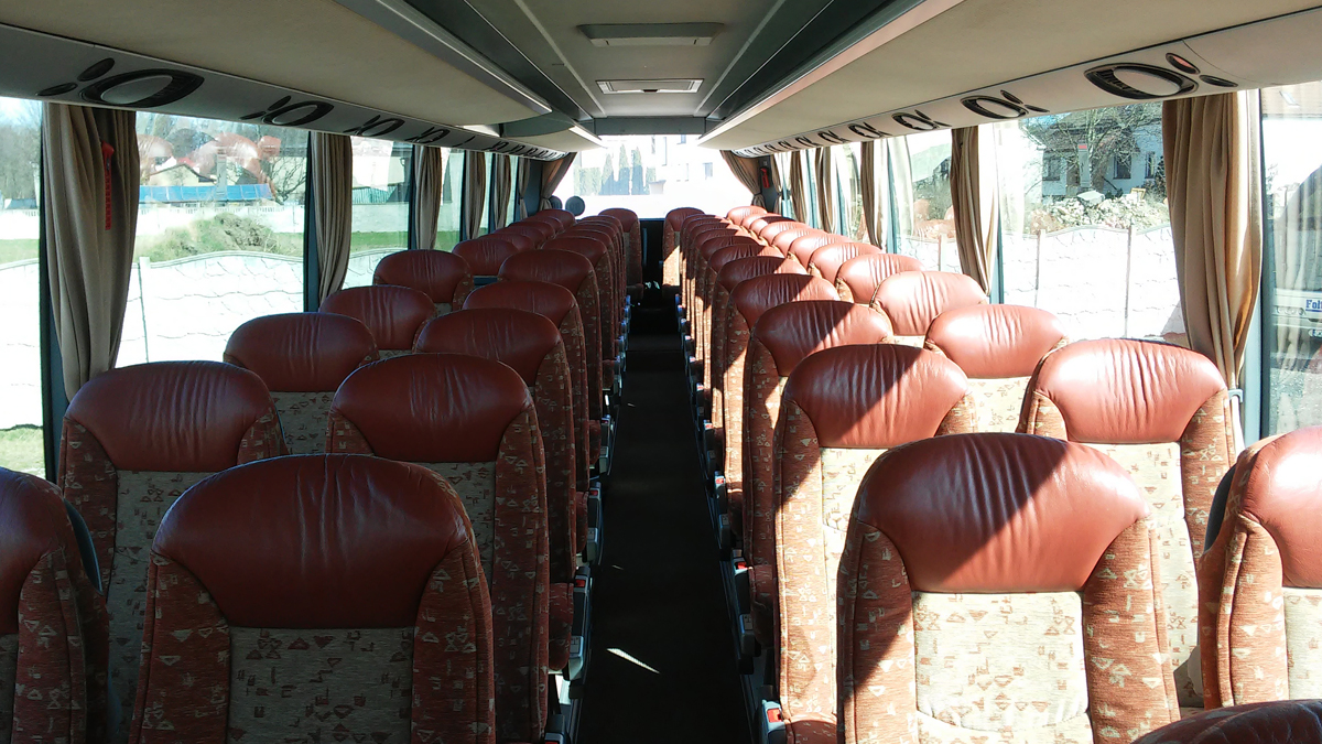 - klimatyzacja, TV, DVD, WC, nagłośnienie, rozkładane fotele, indywidualne nawiewy, cafe bar